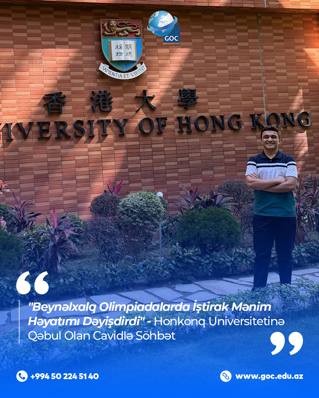 – Beynəlxalq olimpiadalar mənim üçün CV-də sadəcə bir xətt olmadı. Universitetlərə müraciət zamanı məni həmyaşıdlarımdan fərqləndirən əsas üstünlük məhz bu yarışlarda qazandığım nailiyyətlər idi. Xüsusən də Honkonq Universitetinin müsahibəsi zamanı ABŞ-də iştirak etdiyim "Copernicus Olympiad" haqqında xüsusi sual aldım. Oradakı və digər olimpiadalardakı uğurlarımı izah etdikdə, qəbul komissiyasında çox müsbət təəssürat yaratdım.